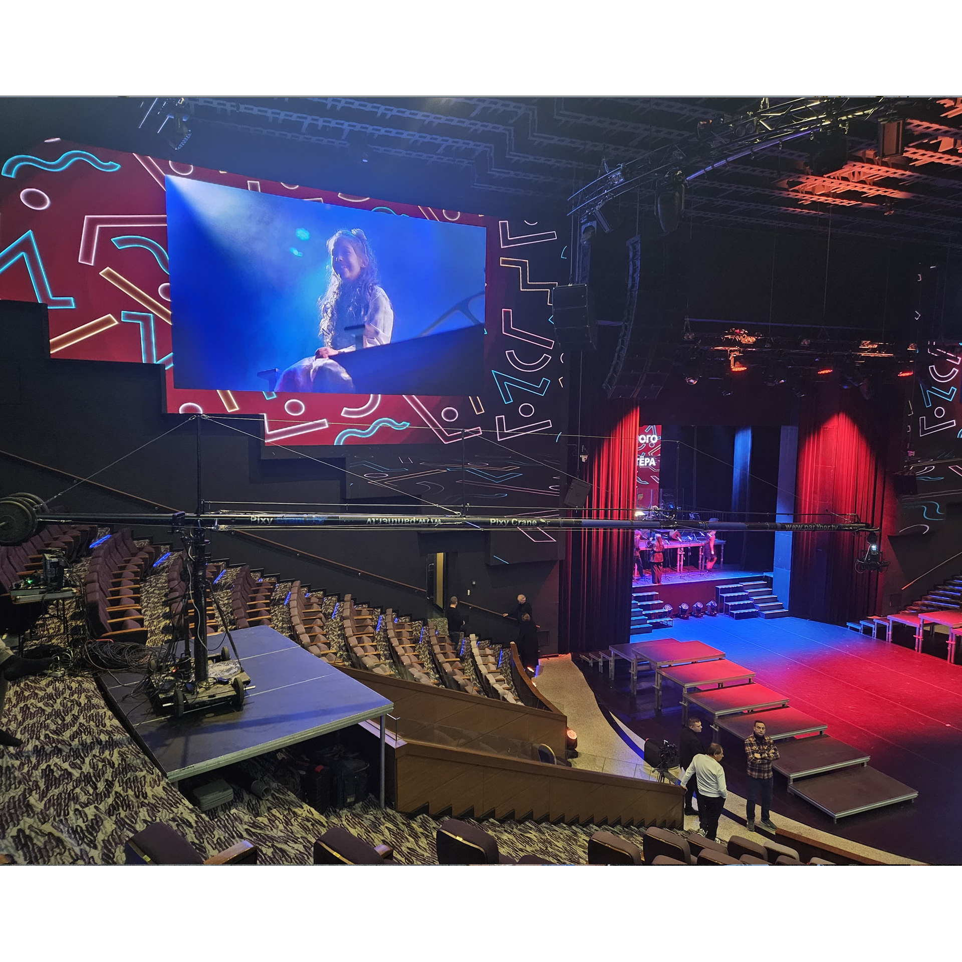 Операторский кран Panther Pixy может работать в небольших помещениях и устанавливаться на балконах зрительных залов. У нас есть опыт работы в Государственном Кремлевском Дворце, театре Оперетты, в павильонах видеостудий и на натуре.